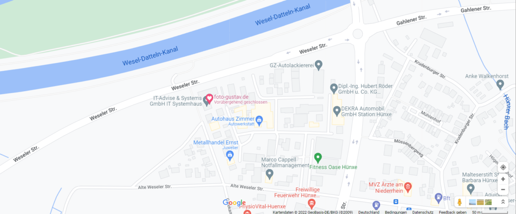 Zirka 2,5 Km von der A3 Autobahnabfahrt (7) Hünxe liegt das Studio. Du fährst Richtung Hünxe und lässt die Autobahnpolizeiwache Hünxe rechts liegen. Am neuen Kreisverkehr nimmst Du direkt die erste Ausfahrt in die Dinslakener Straße. An der nächsten Ampel biegst Du rechts in Gewerbegebiet auf die Alte Weseler Straße. Die Feuerwehr lässt Du links liegen und biegst in die Erste rechts ins Bannemer Feld. Am Ende des ersten Abschnitts lässt Du die Fahrschule und VW rechts liegen und folgst weiter nach links dem Bannemer Feld. An der zweiten rechts bei Renault biegst Du ab und folgst weiter dem Bannemer Feld. Am Ende der Sackgasse passierst Du das blaue Tor. Auf dem großem Hof gibt’s Parkmöglichkeiten. Das Studio ist im linken Gebäude.