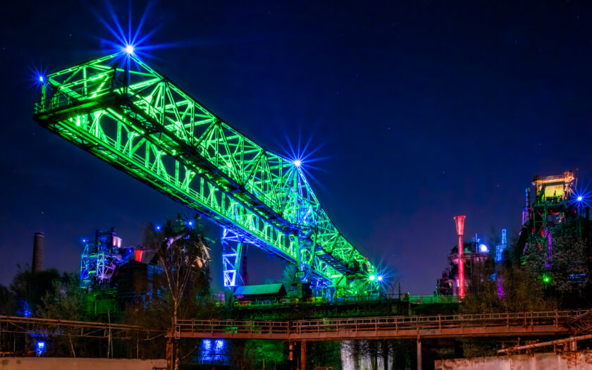 Titelbild: Landschaftspark, Duisburg Nord – Das Krokodil (Laufkran) und im Hintergrund die ehemaligen Hochöfen 3 bis 5 | Lichtinstallation des britischen Künstlers Jonathan Park, Bild […]