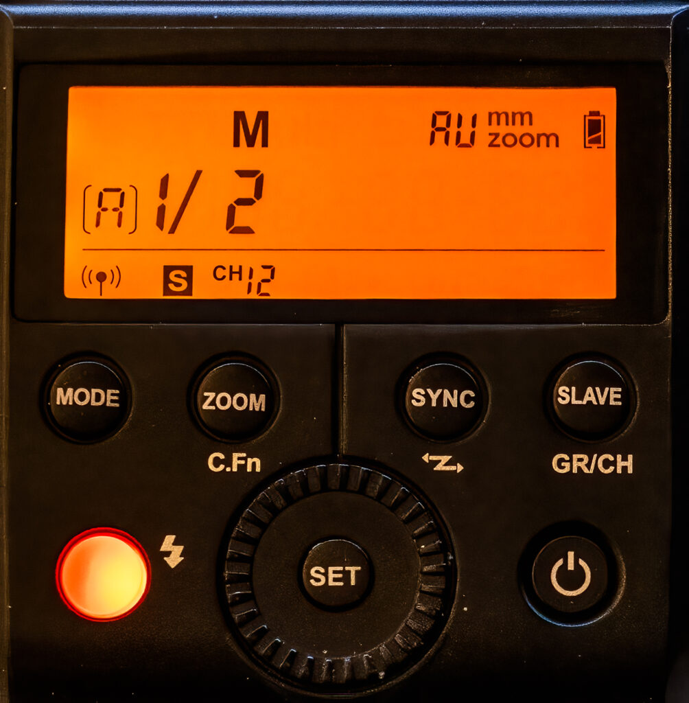 Manuelles Blitzen setzt meist eine kleine Serie von Testbelichtungen voraus. Die Blitzenergie lässt sich pro Blitz manuell von 1/1 bis 1/128 in 1/3-Stufen einstellen. Zu Beachten ist dabei auch der Abstand und die Ausrichtung (indirekt gegen die Decke oder Wand) des Blitzes zum (Haupt-)Motiv, da sich die Lichtmenge zum Abstand nicht linear sondern quadratisch verhält.