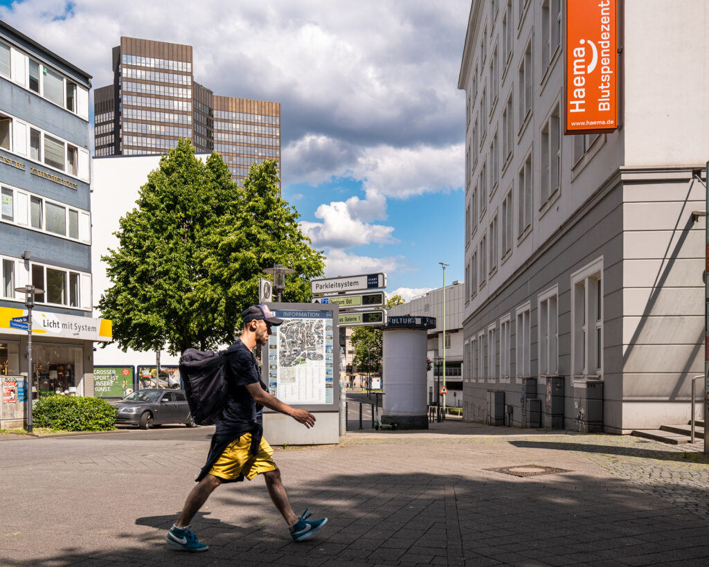 Die folgenden vier Beispielfotos-Fotos sind direkt nach dem Kauf beim Händler meines Vertrauens – calumet in Essen – auf dem Weg durch die Einkaufsstraßen in Essen entstanden.