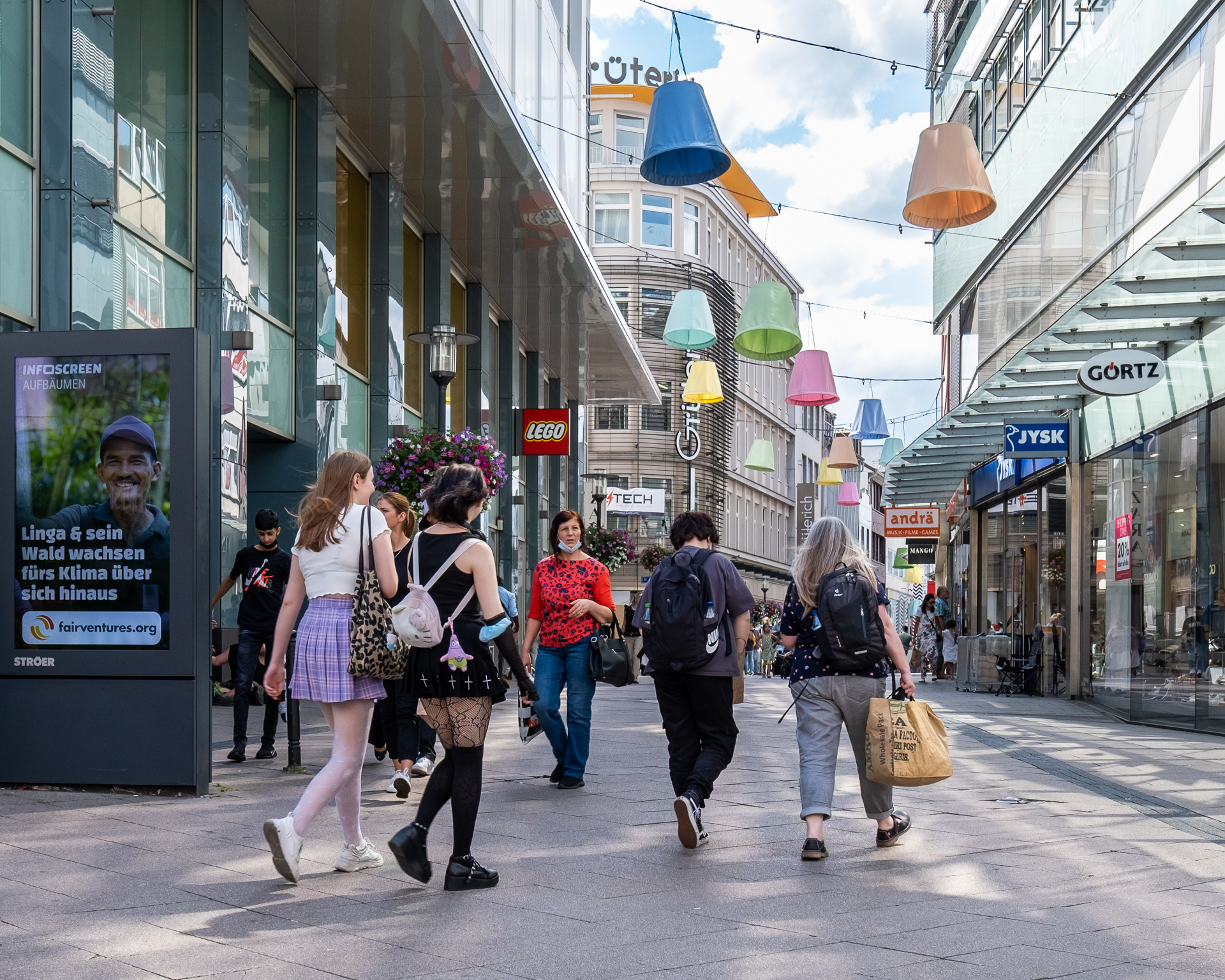 Die folgenden vier Beispielfotos-Fotos sind direkt nach dem Kauf beim Händler meines Vertrauens – calumet in Essen – auf dem Weg durch die Einkaufsstraßen in Essen entstanden.