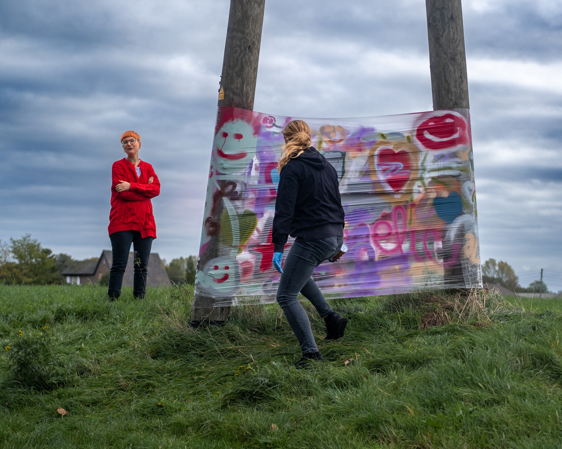 Vielen lieben Dank, sagen die Krudenburger Kids, Raphael Wiese von „unprofessional.artworks“ , Annelie Giersch vom Quartierspunkt Hünxe und die Dorfgemeinschaft Krudenburg