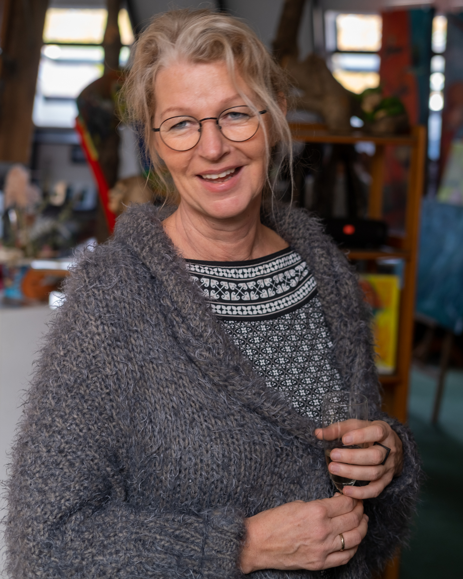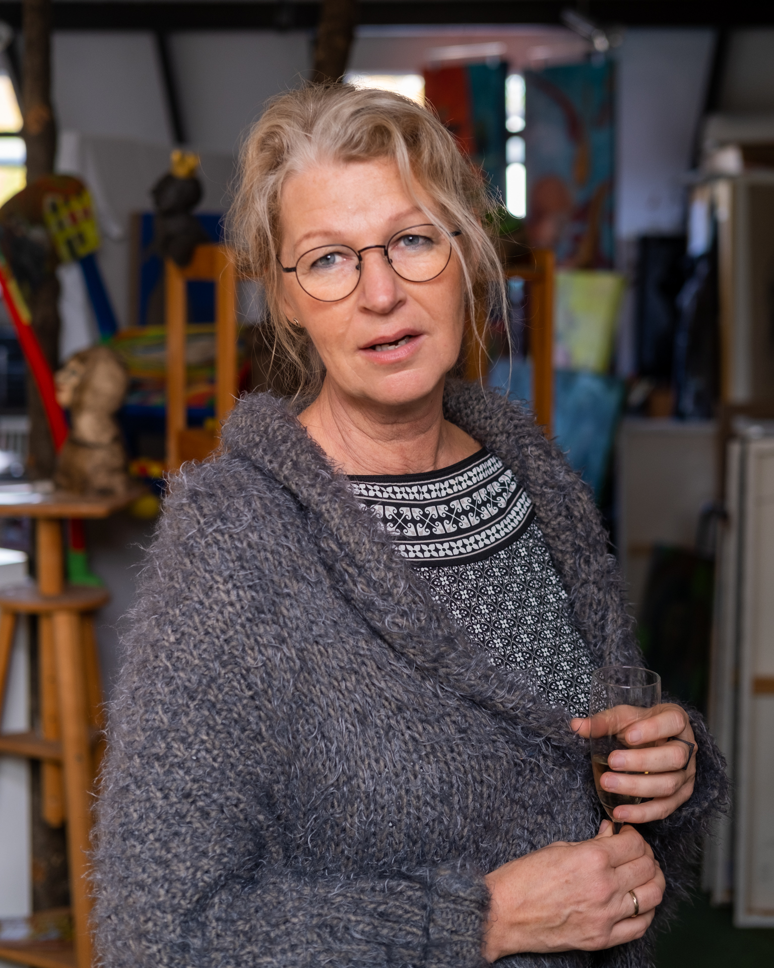 Gustav: “Elke, Du arbeitest ja nach wie vor als Krankenschwester. Wie siehst Du Dich selbst? Bist Du Krankenschwester, die ‘nebenbei’ sich ihrer Kunst widmet oder bist Du Künstlerin, die ‘nebenbei’ arbeitet?” Elke: “Ich liebe meinen Beruf als OP-Schwester und arbeite gern. Manches, was ich im Berufsalltag erlebe, findet sich auch in verarbeiteter Form irgendwo in meiner Kunst wieder. Ja, und Kunst ist meine Leidenschaft. Zu Deiner Frage, was mehr dominiert: Es steht so auf der Kippe, also zur Zeit hat beides in etwa die gleichen Anteile. Wobei sich der Trend zuletzt immer mehr in zu Gunsten der Kunst verschiebt. Dieser Trend wird zusätzlich durch meine steigenden Aktivitäten an der Kunstschule Wesel beeinflusst.”